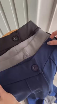 The high-waisted design of these trousers is not only on-trend but also incredibly flattering for all body types. The wide elastic waistband provides a secure and comfortable fit, while the relaxed straight leg silhouette elongates the legs for a slimming effect. Whether you pair them with a tucked-in blouse or a cozy sweater, these trousers will quickly become your go-to for effortless chic style.